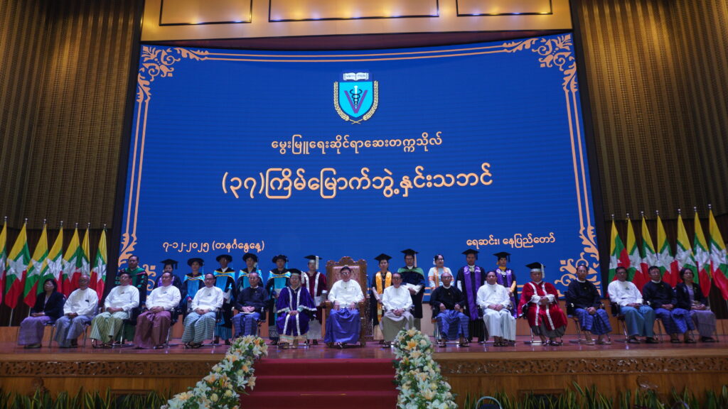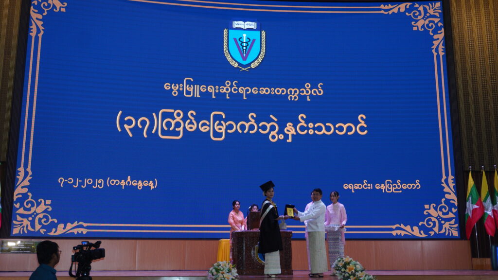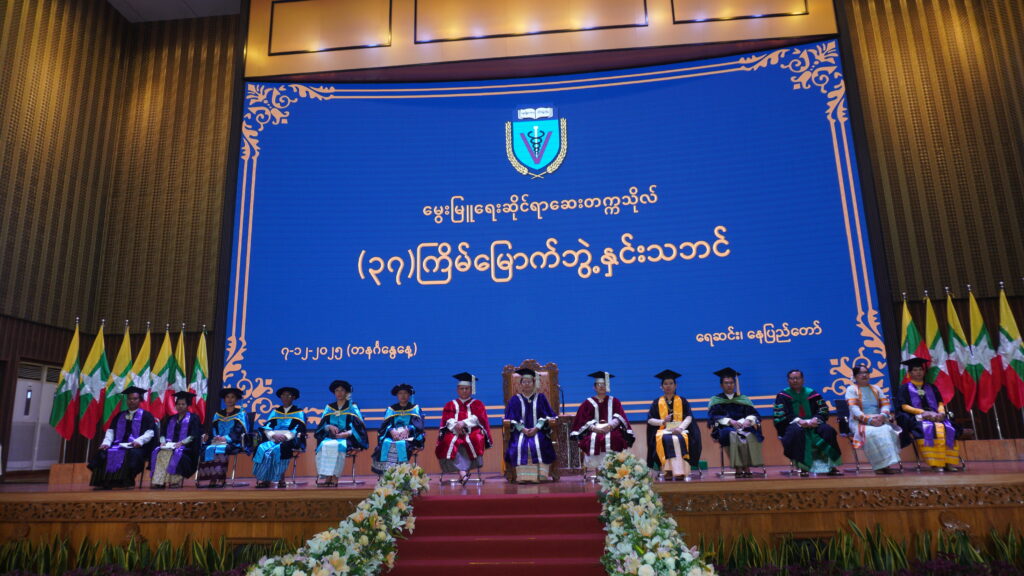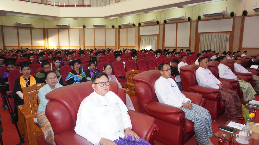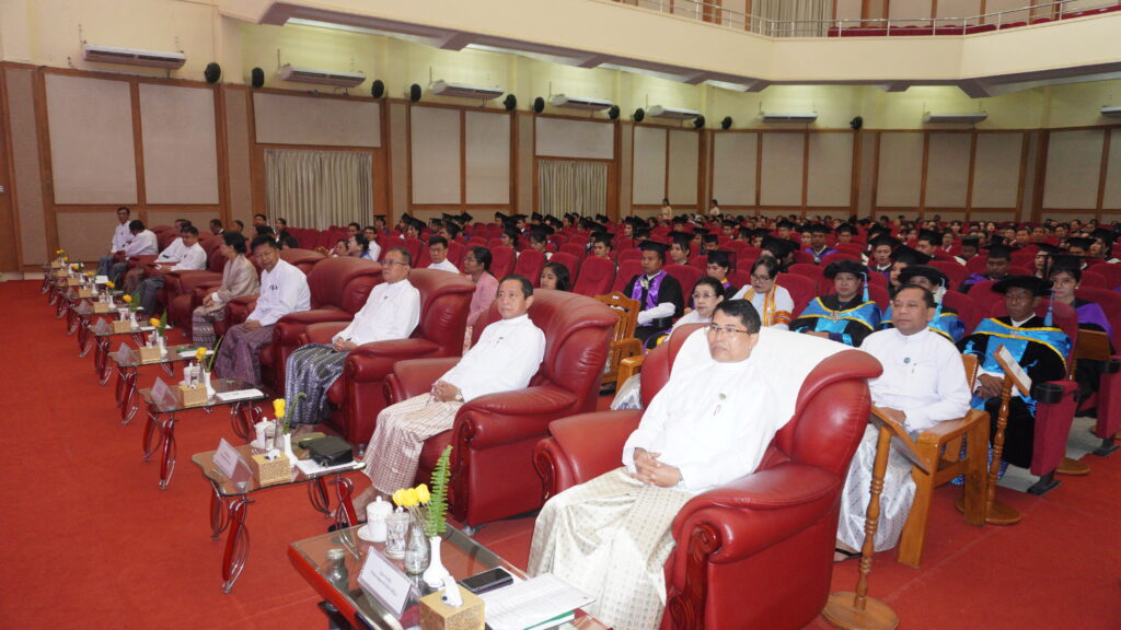 မွေးမြူရေးဆိုင်ရာ ဆေးတက္ကသိုလ်၏ (၃၇)ကြိမ်မြောက် ဘွဲ့နှင်းသဘင်အခမ်းအနားကို ယနေ့နံနက်ပိုင်းက ရေဆင်းစိုက်ပျိုးရေးတက္ကသိုလ်ဘွဲ့နှင်းသဘင်ခန်းမ၌ကျင်းပရာ စိုက်ပျိုးရေး၊ မွေးမြူရေးနှင့်ဆည်မြောင်းဝန်ကြီးဌာန ပြည်ထောင်စုဝန်ကြီး ဦးမင်းနောင်၊ ဒုတိယဝန်ကြီးများ၊ အမြဲတမ်းအတွင်းဝန်နှင့် ညွှန်ကြားရေးမှူးချုပ်များ၊ ပါမောက္ခချုပ်နှင့် ပါမောက္ခ/ ဌာနမှူးများ၊ ဆရာ ဆရာမများ၊ ဘွဲ့ရမောင်မယ်များနှင့် မိဘဆွေမျိုးများ တက်ရောက်ကြသည်။